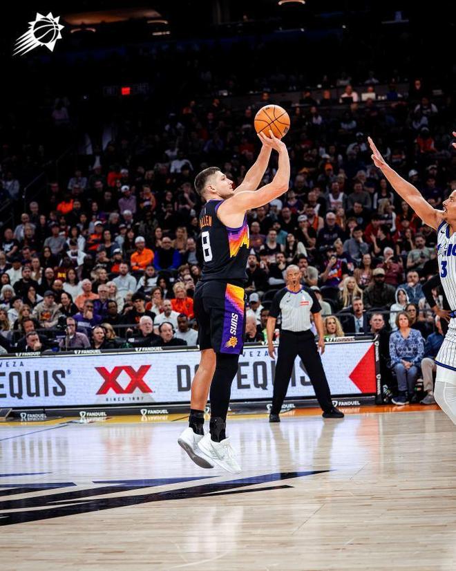 中场休息回来,太阳进攻火力大幅提升完成两队本场首次单节得分30+,且限制魔术首次单节得分不足25分。太阳逐步用团队攻势展开反扑,前三节已经有3人得到14分,分别是吉莱斯皮、阿伦与古德温均得到14分。魔术也是3人得分上双,贝恩27分、班凯罗14+8+5与卡特12分,但太阳单节34-22净胜12分,前三节比赛结束太阳77-73反超魔术4分优势。