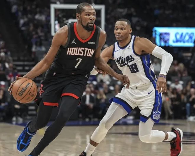 北京时间2月26日,NBA常规赛继续进行,萨克拉门托国王队前往客场挑战休斯顿火箭队。国王队伤病满营,此前刚刚结束队史最长的16连败,但这并不会改变球队俯冲状元签的计划。火箭队全明星周末过后3战2胜,球队在西部第3和西部第5之间摇摆,阿门不幸遭遇股四头肌伤势。此役,国王队首发五虎为威少+德罗赞+穆雷+阿丘瓦+雷诺,火箭队首发五虎为杜兰特+申京+阿门+小贾巴里史密斯+伊森。