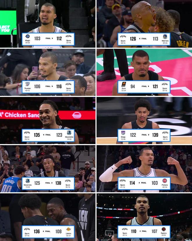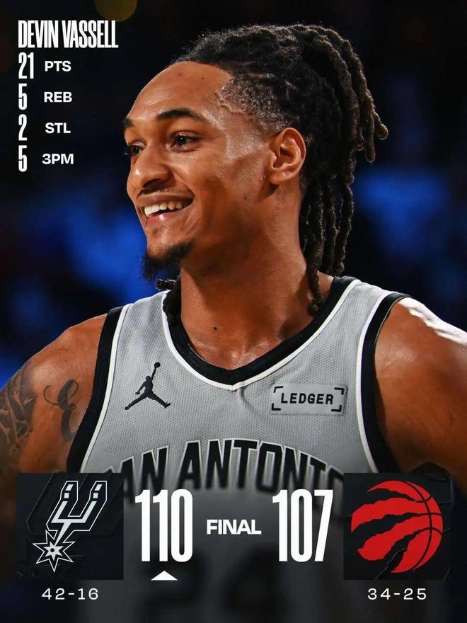 瓦塞尔21+5马刺胜猛龙 上次10连胜是10年前