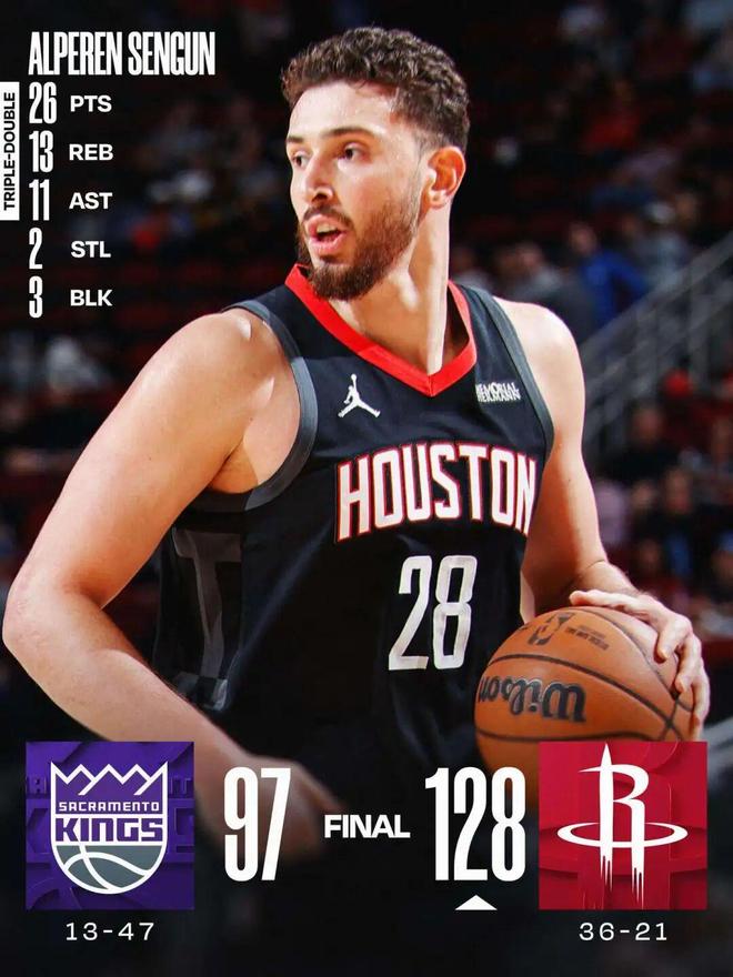 申京26分三双谢泼德28分 火箭大胜国王